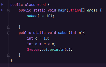 public static void saber(int a){ int a = 10; int b = a-2 }