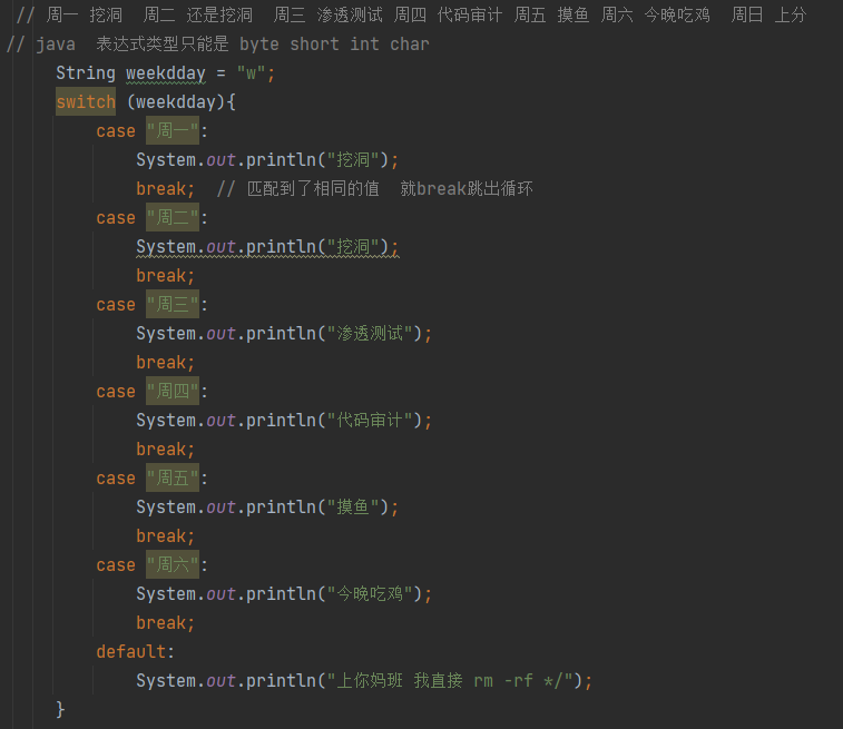 switch 分支结构 swith 适用于具体的数值 判断 一旦找到就会执行