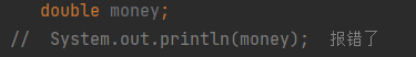 数据类型 变量名称 = 初始值;double money = 6.0;