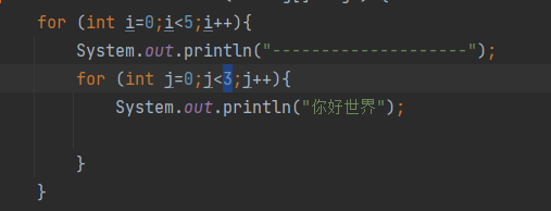 这里会输出出 5 个 3 行的 “你好世界” 我们第一个 i 是基于下面输出的次数,嵌套于其中的