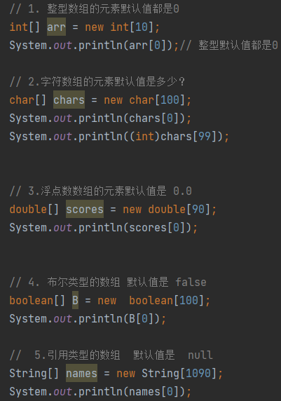 | 动态初始化数组:定义数组的时候只确定元素的类型和 数组的长度 之后再存入具体的数据
