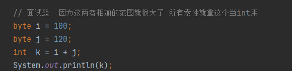 int的类型范围比byte大, 但这时 byte又想接收它的数据 于是发生了强制类型转换