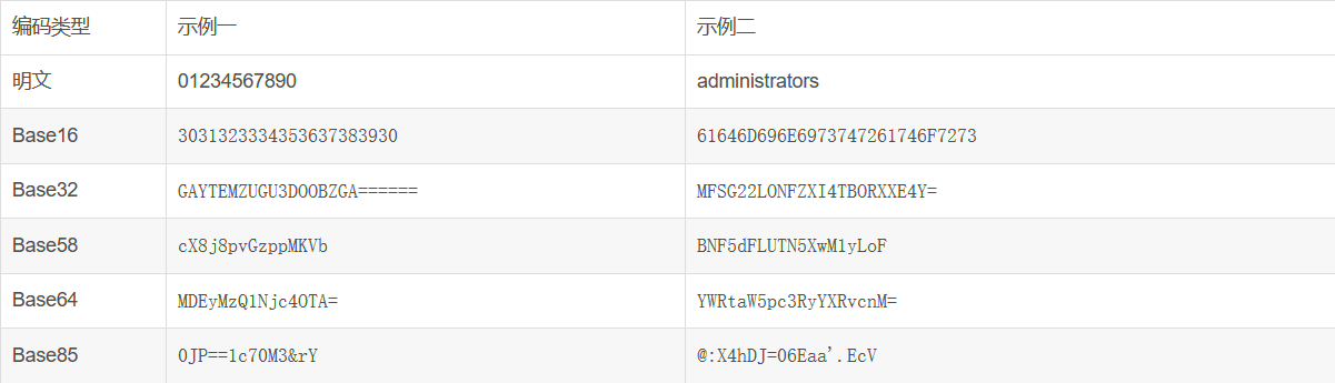 Base64:一般情况下结尾都会有 1 个或者 2 个等号,明文很少的时候可能没有;