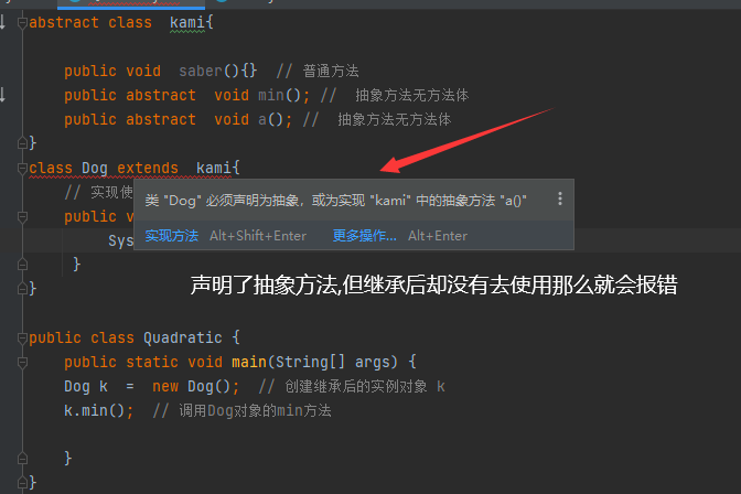当一个类包含了抽象方法 该类必须是抽象类,抽象类和抽象方法一样 必须使用 abstract 关键字修饰