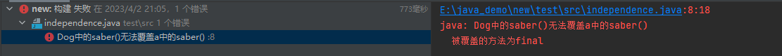 ---------------------------------------------- 编译报错 被final修饰的方法不能被重写 会成为最终的方法,如果在父类中定义某个方法,如果不希望被子类重写 那么就可以使用final关键字修饰