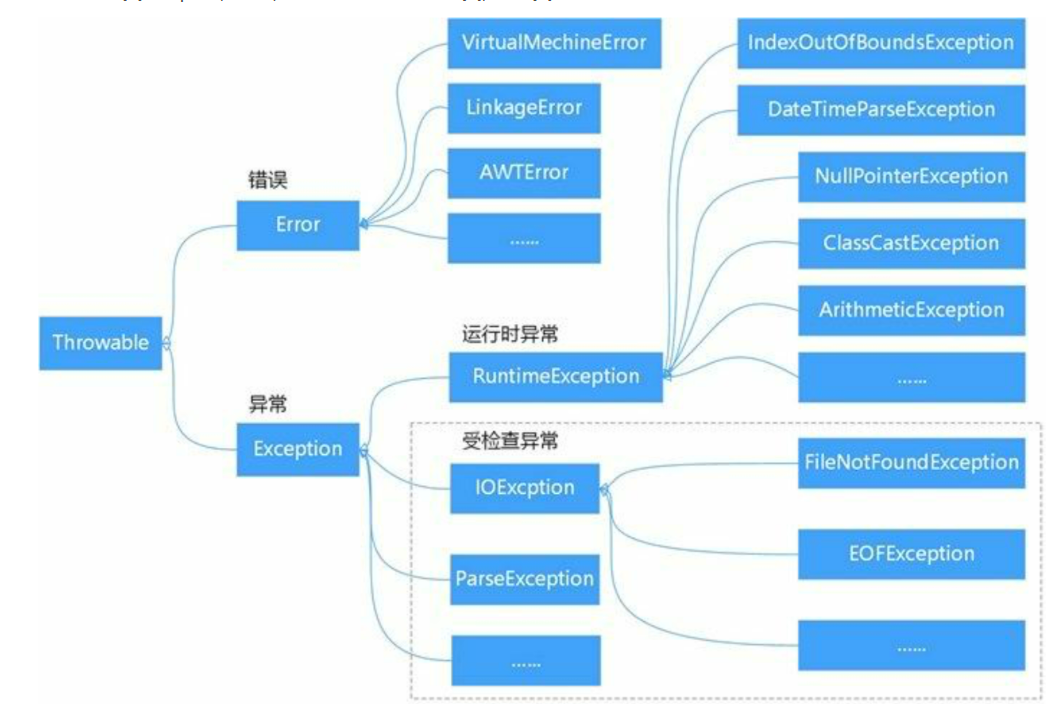 ArithmeticException 异常只是 java 类中的一种,Java 提供了大量的异常类,这些类全部继承于 java.lang.Throwable类