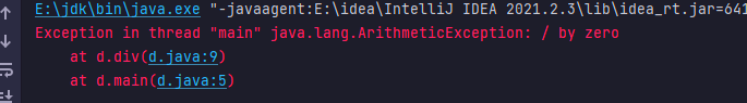 | public class d { public static void main(String[] args) { System.out.println("值是"+div(4,0)); } public static int div(int x,int y){ int re = x/y; return re; } }