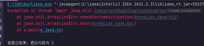 使用迭代器对集合中的元素进行迭代时,如果调用了集合对象的 remover() 方法删除元素,那么继续使用迭代器会出现异常,下面通过案例来演示说明