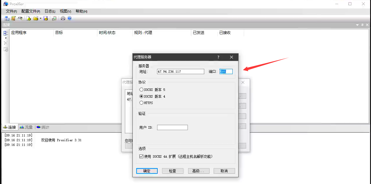 1 | windows: SocksCap Proxifier(中文版)代理IP输入后进行检查,进行修改为正确的不然会检查不对 |