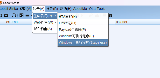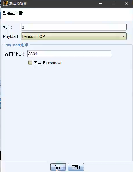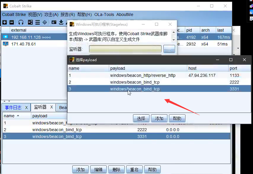 CS 创建新的监听器设置对应的监听端口,生成后门文件,给予倒监听器 3331