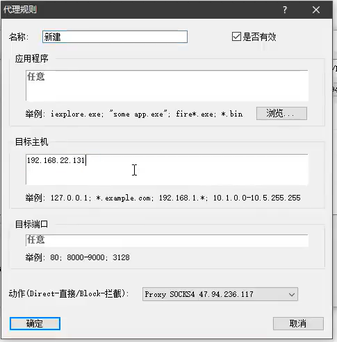 添加代理规则,目标为主机 3 IP , 访问这个地址的时候就会开启代理