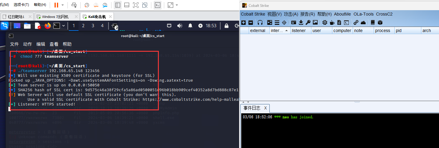 开启 CS 物理机 Windows 作为客户端 Kali 作为服务端启动