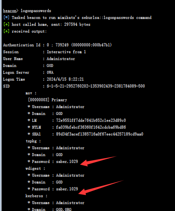 对 DC 域控进行横向移动利用先前抓取的明文密码,配合 SMB 监听器,