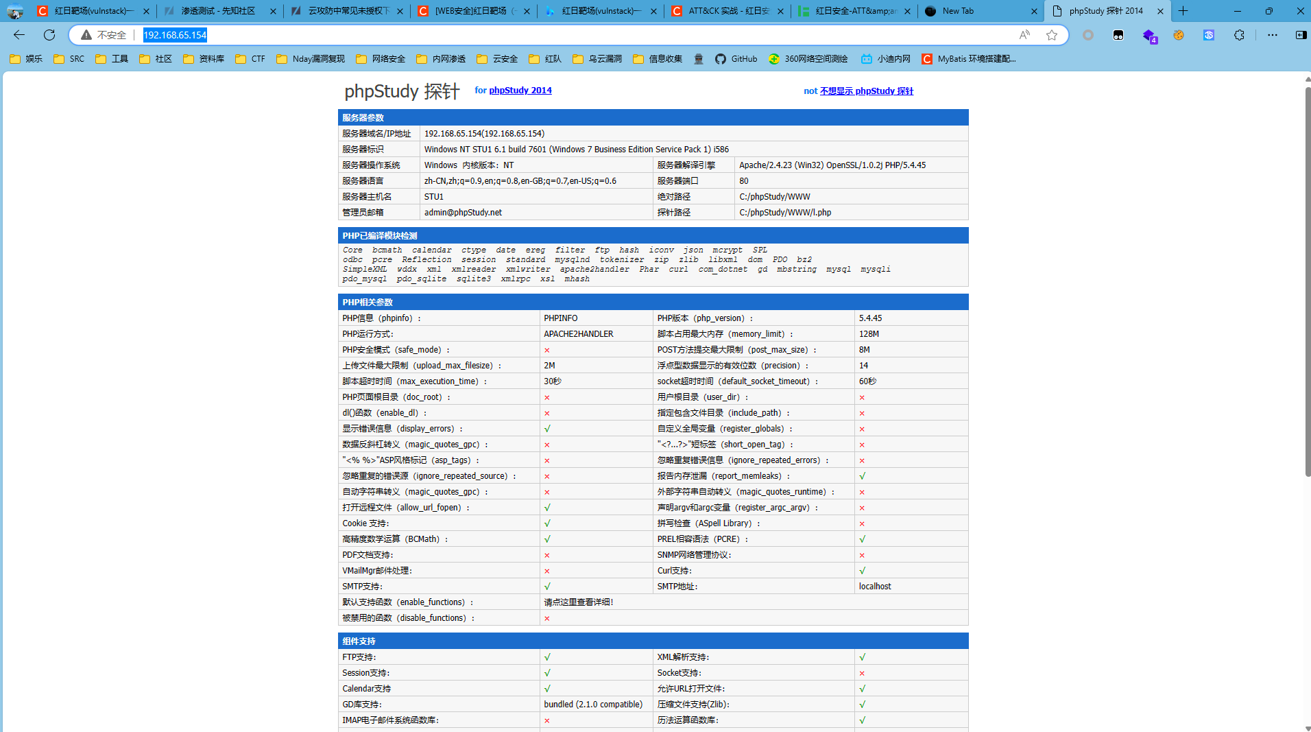 kali 访问 80 端口 phpinfo( ) 页面:自己主机也是可以访问到此页面,本身就是同一个网段, win7 网段是物理机给予的