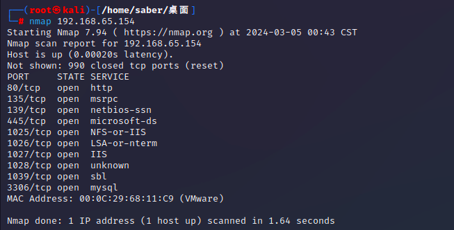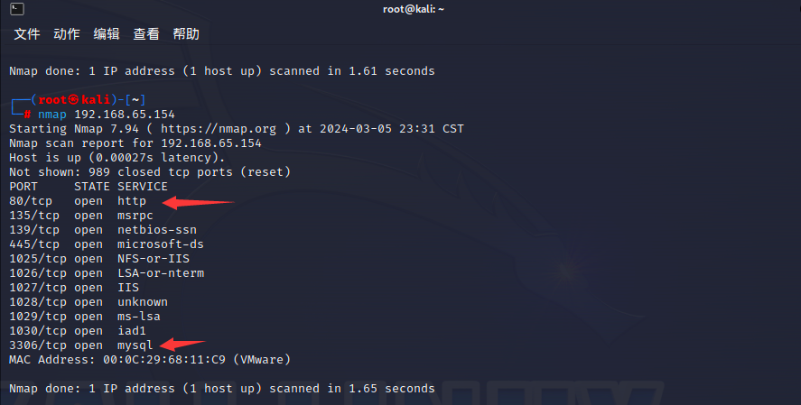 1 | arp-scan-l // kali前期使用该命令扫出同有一网段下其他主机 |