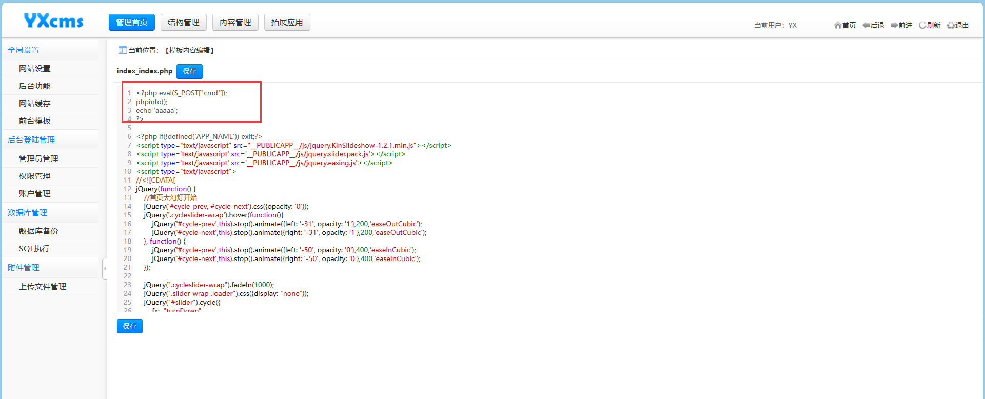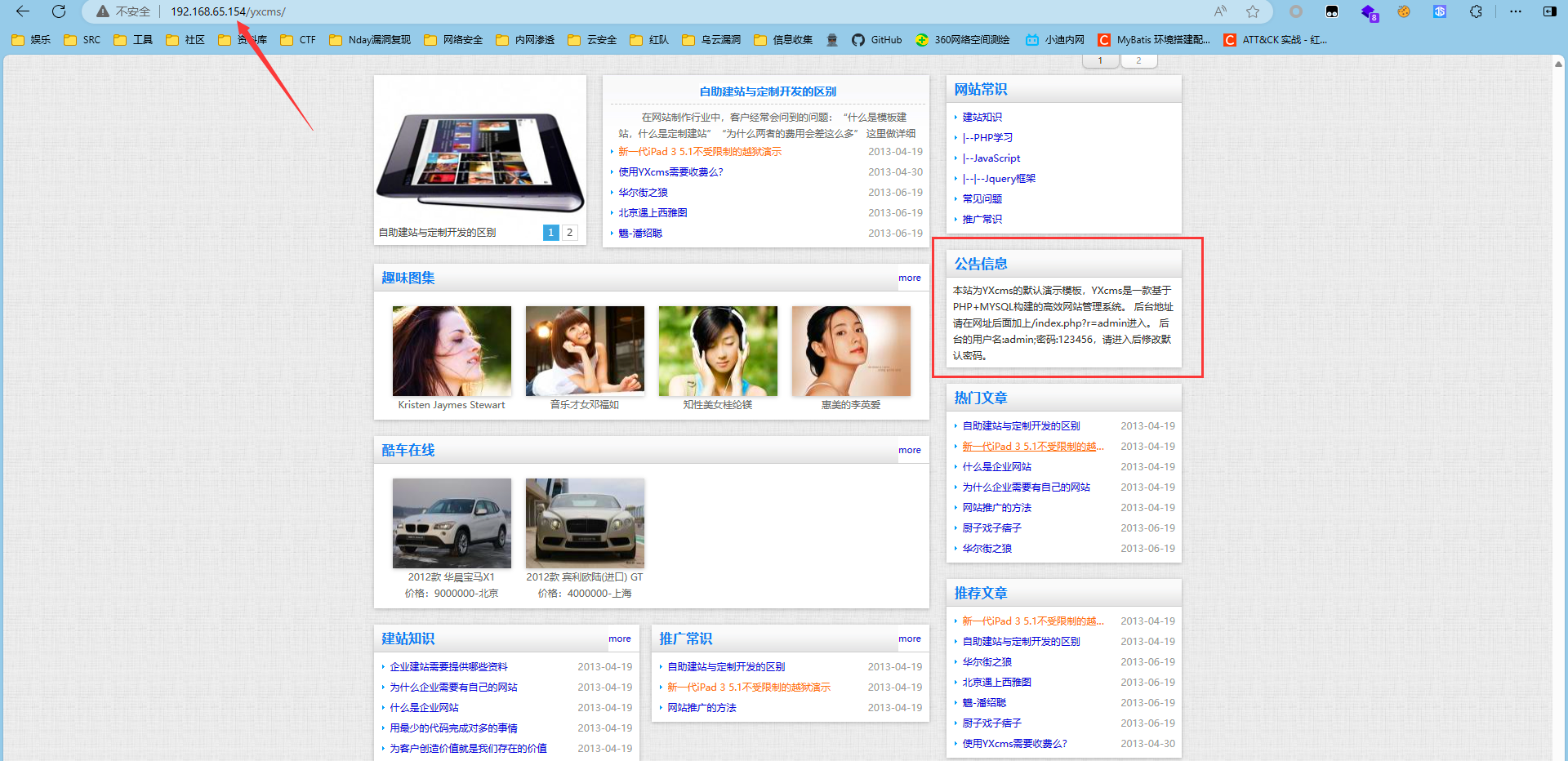 1 | http://192.168.65.154/yxcms/index.php?r=admin |