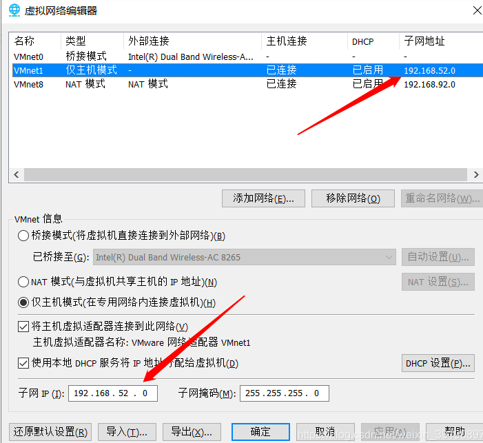 【注意】实际上域环境三台虚拟机的 IP 初始状态就已经被配置为固定的 192.168.52.XXX/24 网段(同时已配置好域控 IP 必定为 192.168.52.138),故 VMware 仅主机模式的 VMnet1 网卡应注意也配置为 192.168.52.XXX/24 网段