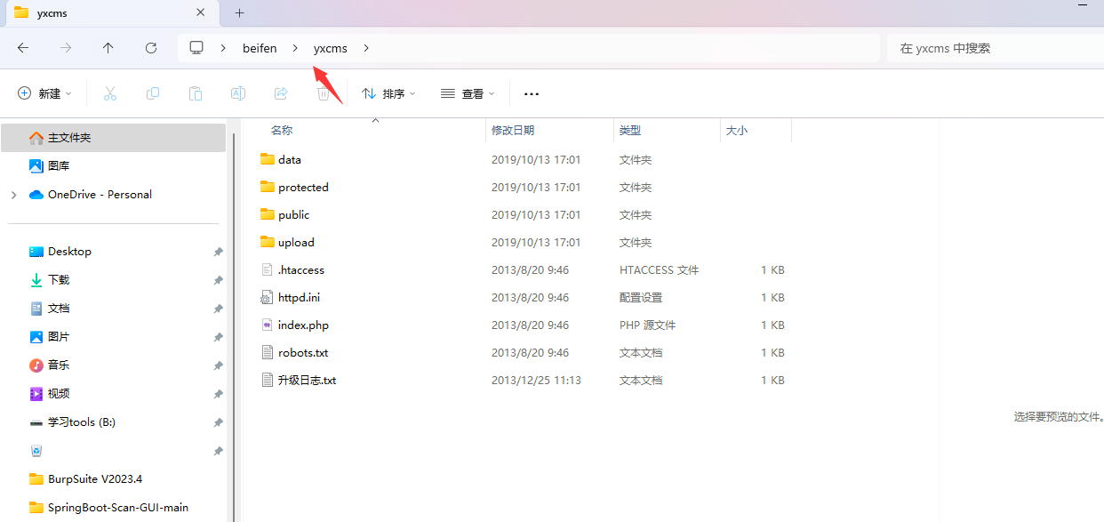 下载压缩包解压后根据文件夹名称判断是个 cms 拼接访问