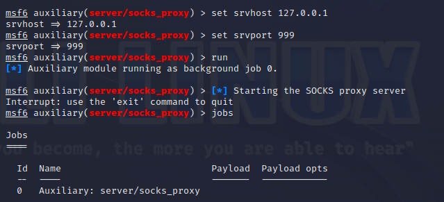 1 | set srvhost 127.0.0.1 // 设置代理为本地 |