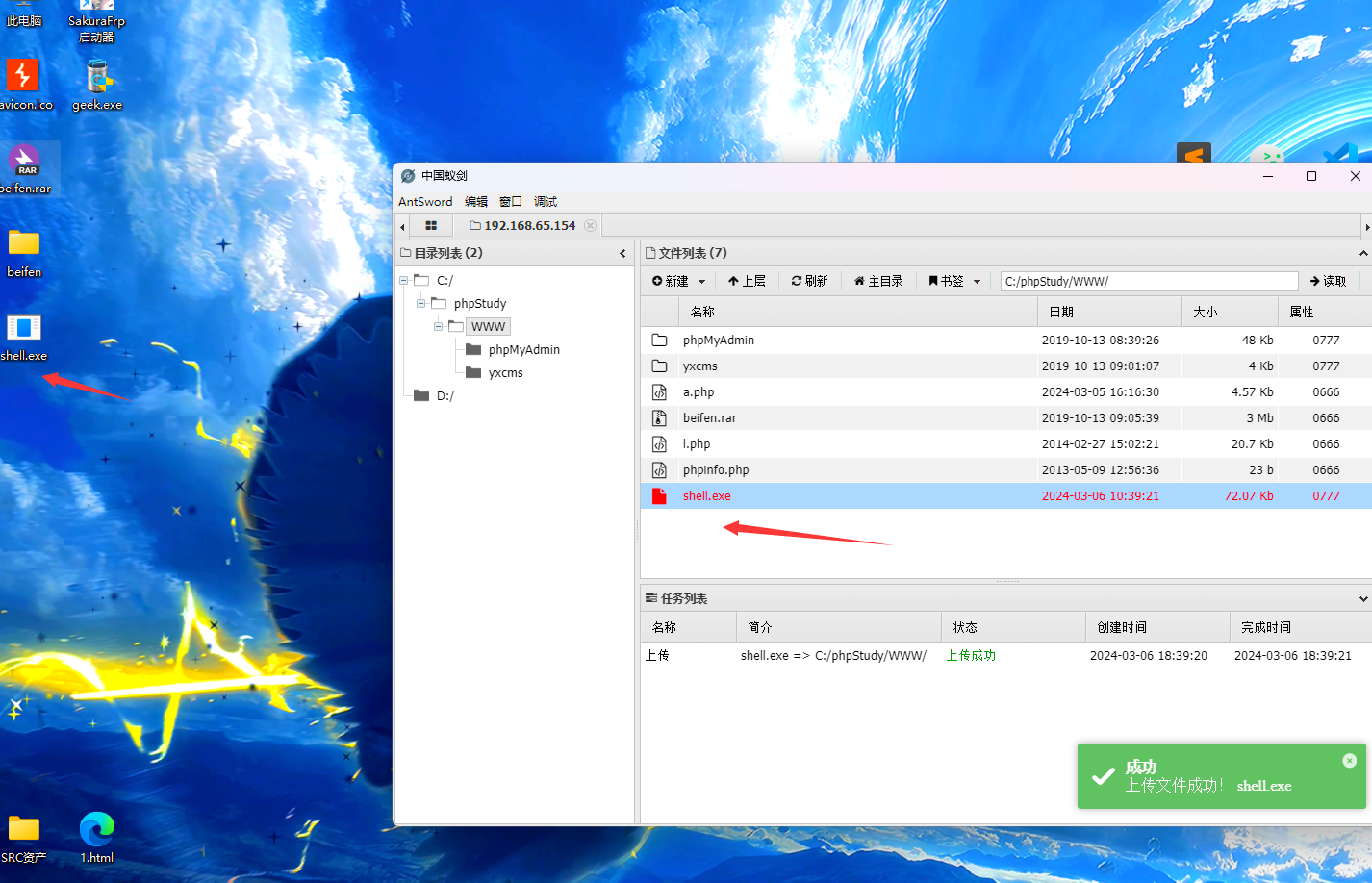 拷贝木马使用蚁剑将文件上传到 win7 目录下
