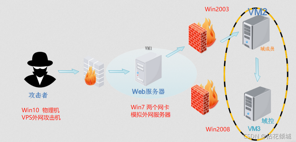 横向渗透,使攻击机利用 win7 做跳板直接通讯到域控,利用 win7 为媒介