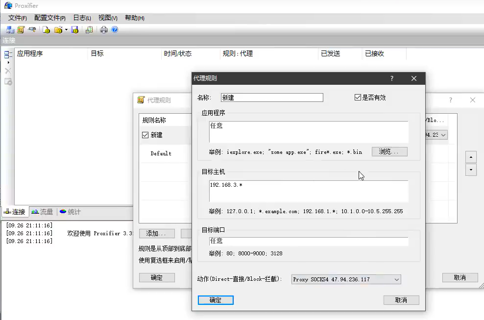 建立代理规则,目标主机走 3 网段的通通走这个规则