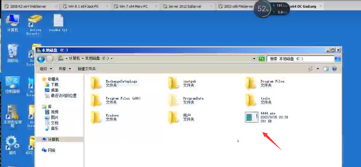 凭证正常连接的域控 C 盘下会拷贝出正向木马文件