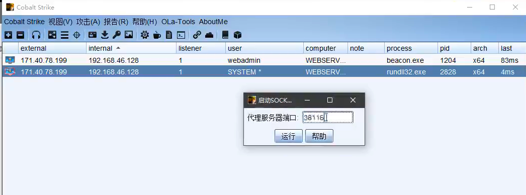 1 | CS—>代理转发—>socks代理 将流量代理到攻击机中,攻击机直接攻击无须上传木马工具 |