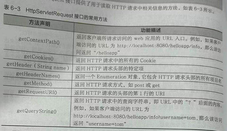 HttpServletRequest 接口提供了用于读取 HTTP 请求中相关信息的方法 下图是方法