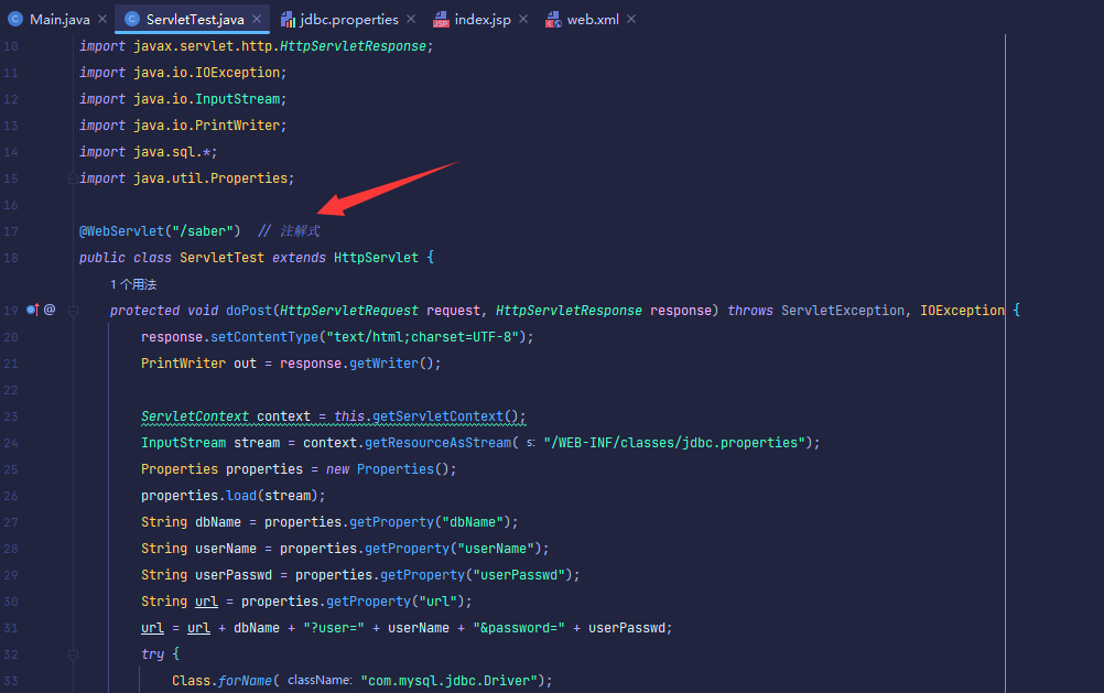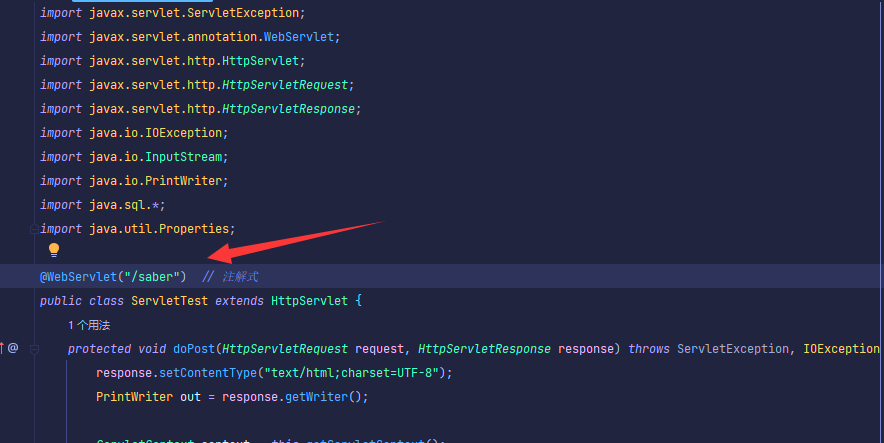 | @WebServlet("/saber") public class ServletTest extends HttpServlet {